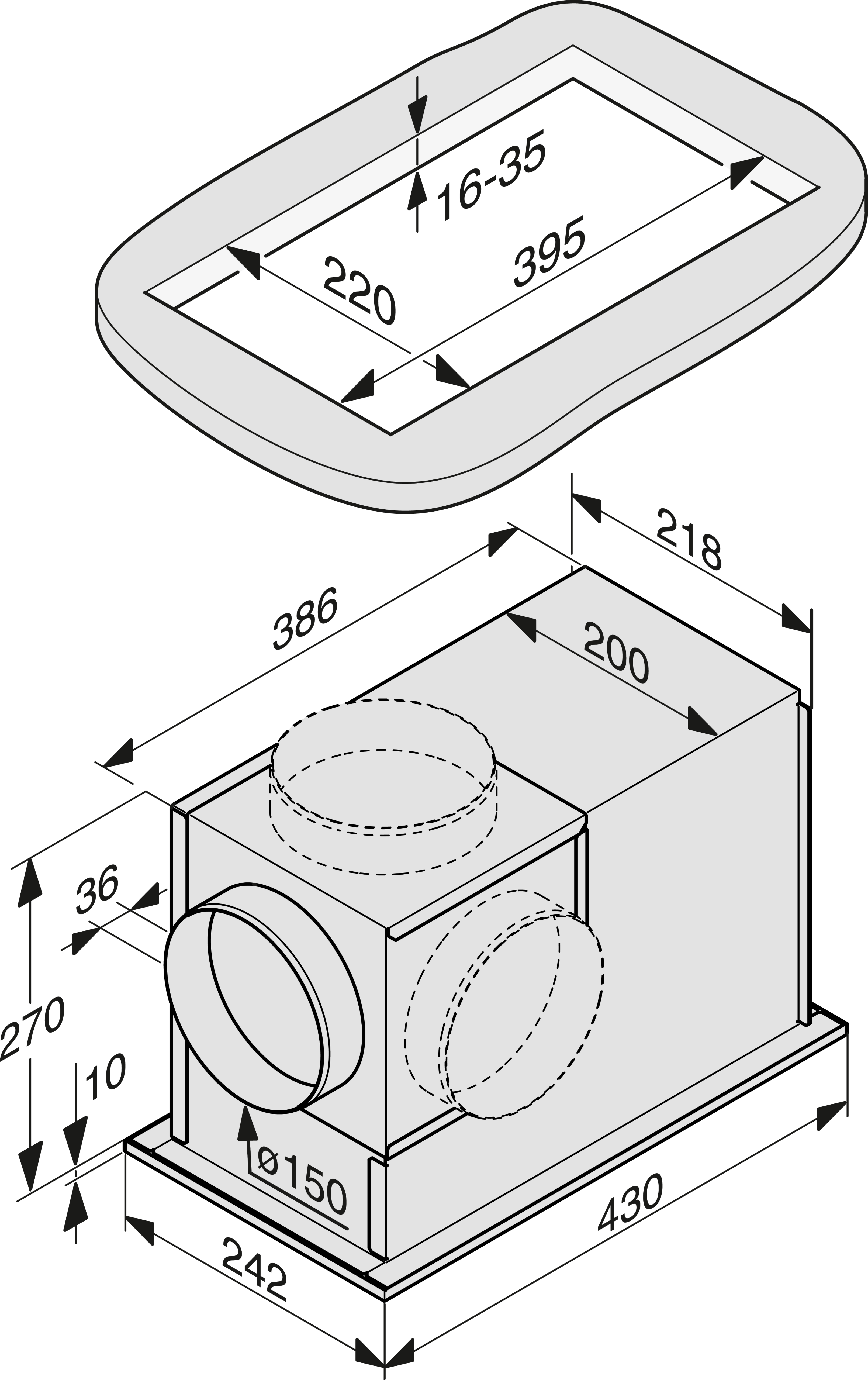 Для переоборудования встраиваемых в столешницу и потолочных вытяжек