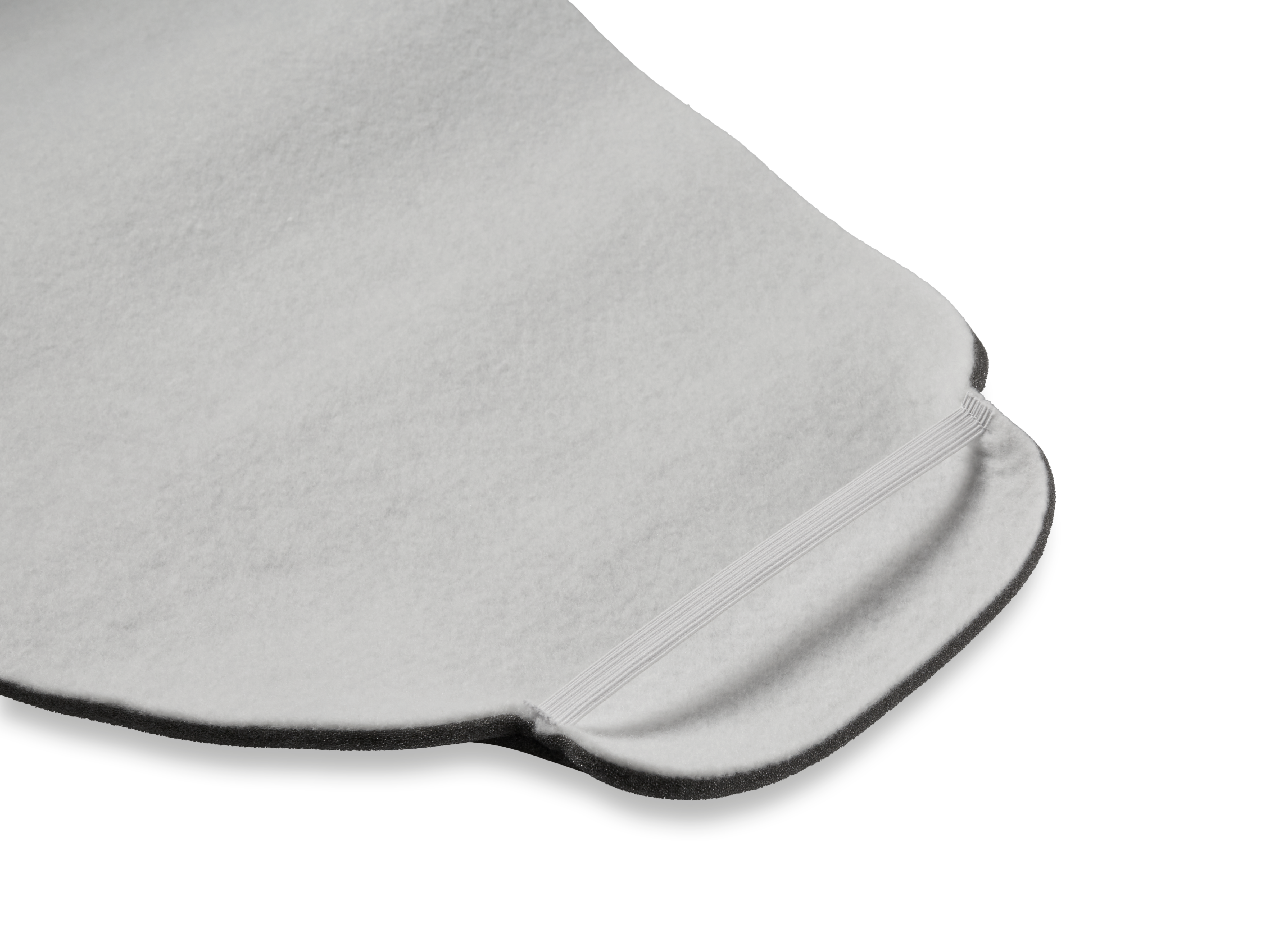 Расстегните застежку чехла на конце гладильного стола. Стяните чехол по направлению к основанию системы. Замените подложку. Наденьте чехол сначала у основания системы на гладильный стол, затем - дальше к его концу. С помощью шнурка туго натяните чехол и проследите за тем, чтобы он был хорошо закреплен. Закрепите застежку чехла и спрячьте ее в полость на конце гладильного стола.