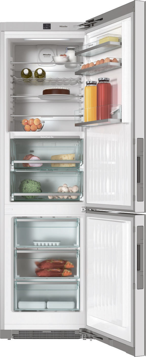 Отдельно стоящий холодильник-морозильник Дверной упор правый, переставляемый Стеклянный фронт Общий объем: 343 л, зона охлаждения: 141 л, зона PerfectFresh: 97, зона замораживания: 101 л Суперохлаждение/cуперзамораживание 2 бокса PerfectFreshPro 3 морозильных бокса Подсветка FlexiLight LED подсветка морозильной камеры Система VarioRoom, ComfortClean, DynaCool, NoFrost Ручка Clik2open Гидравлический доводчик двери SoftClose 3 переставляемые по высоте полочки, 1 - непереставляемая Подставка для яиц, масленка, полочка для бутылок, форма для льда Габариты (В х Ш х Г): 2010 х 600 х 685 мм Страна-производитель: Германия Гарантия 2 года