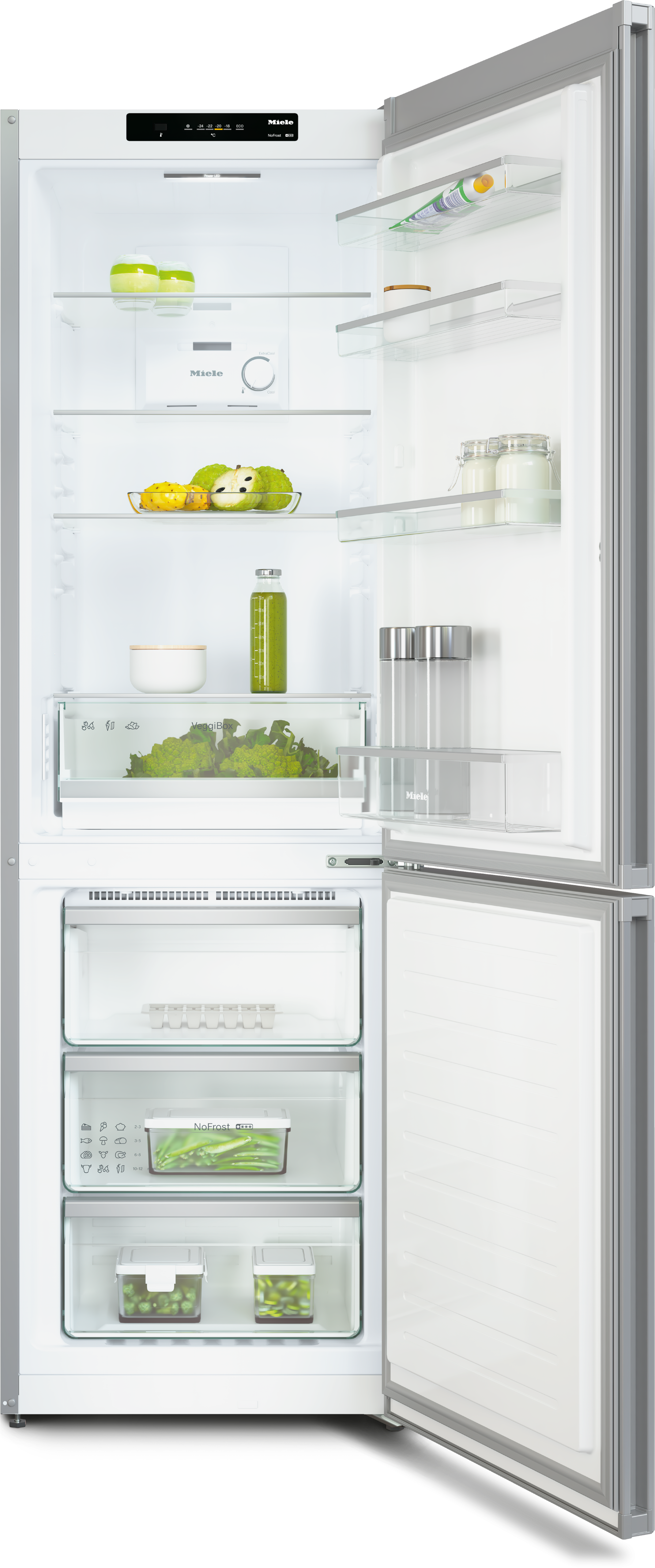 • Технологии: LED-освещение, NoFrost, VarioRoom, SideOpen, EasyControl, SuperFrost, VeggieBoxes