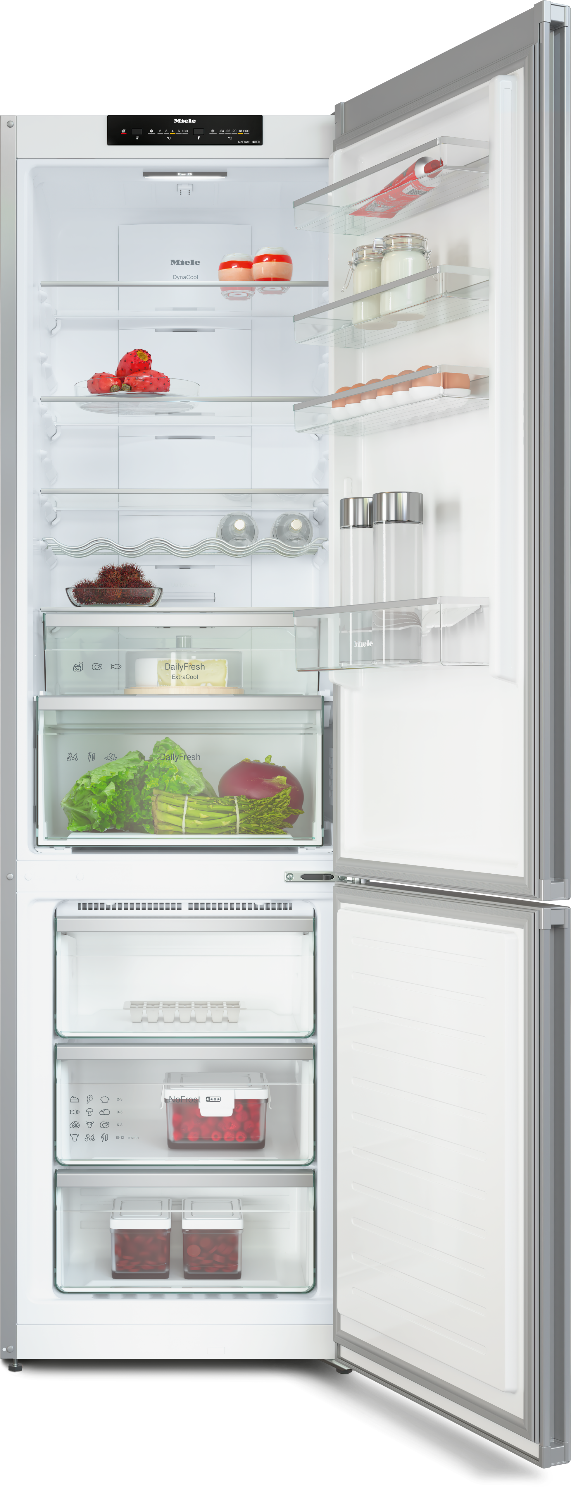 Отдельно стоящая комбинация холодильника с морозильной камерой с DailyFresh ExtraCool, NoFrost и светодиодным освещением для высокого уровня комфорта.