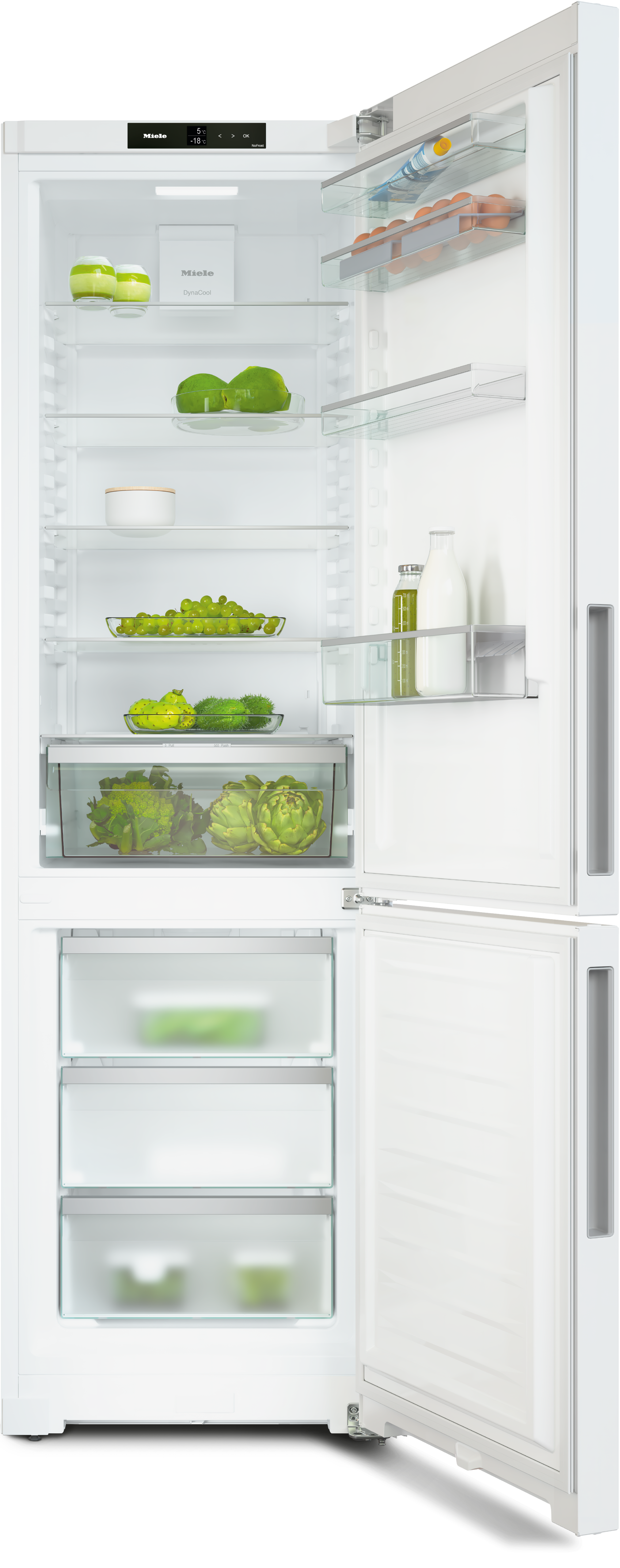 Отдельно стоящая комбинация холодильника с морозильной камерой с функциями DailyFresh, NoFrost и ComfortClean для высокого уровня комфорта.