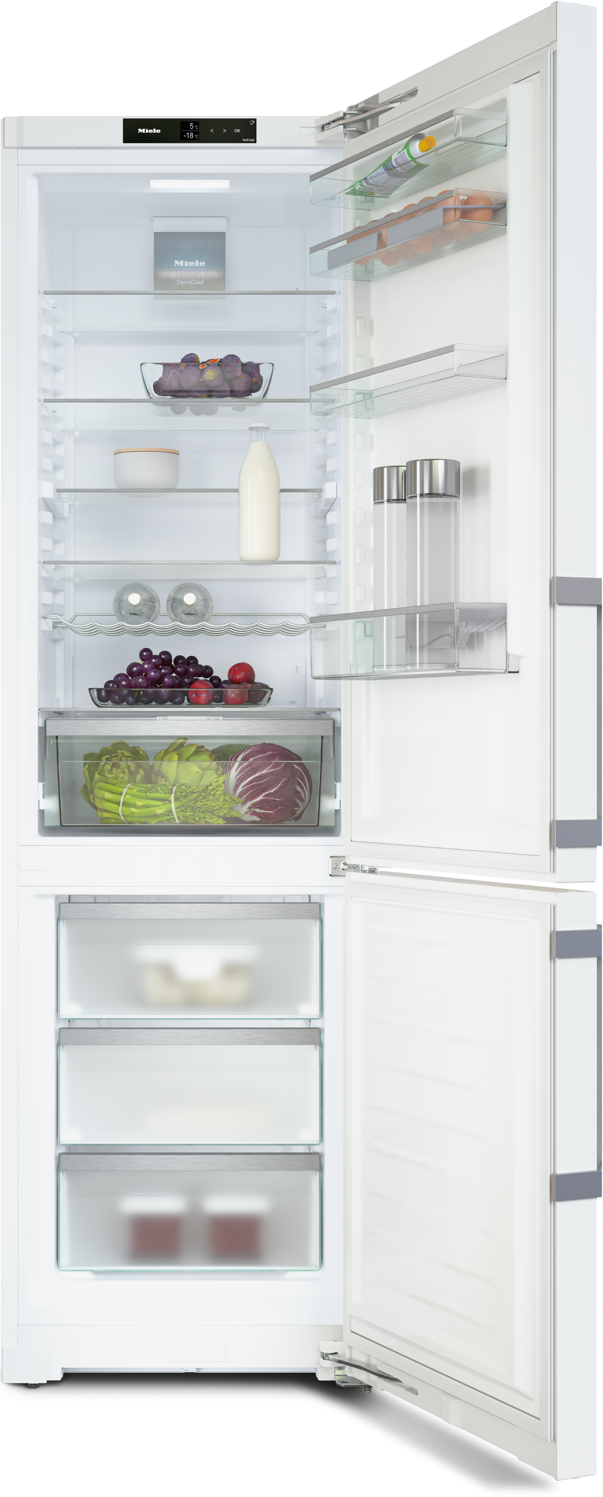 • Технологии: LED-освещение, Miele@home, DailyFresh, ComfortClean, DynaCool, NoFrost, DuplexCool, XL-глубина, VarioRoom, SoftClose, SelfClose, EasyOpen, SensorTouch, SuperFrost, FlexiBoard