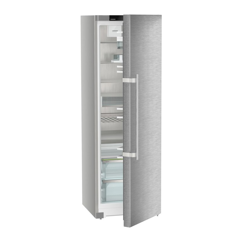 На дверце есть пластиковые лотки для яиц, масла, йогуртов, соусов и напитков. Холодильник Liebherr Rsdd 5250-20 001, фронт нержавеющая сталь оборудован выдвижными контейнерами для охлажденного мяса, рыбы, овощей, зелени и фруктов. Благодаря плотному закрыванию в боксах поддерживается оптимальный уровень влажности. Это предотвращает высыхание и потерю первоначальной свежести содержимого. Светодиодные лампы создают яркое освещение и не мерцают, что способствует комфортной эксплуатации.