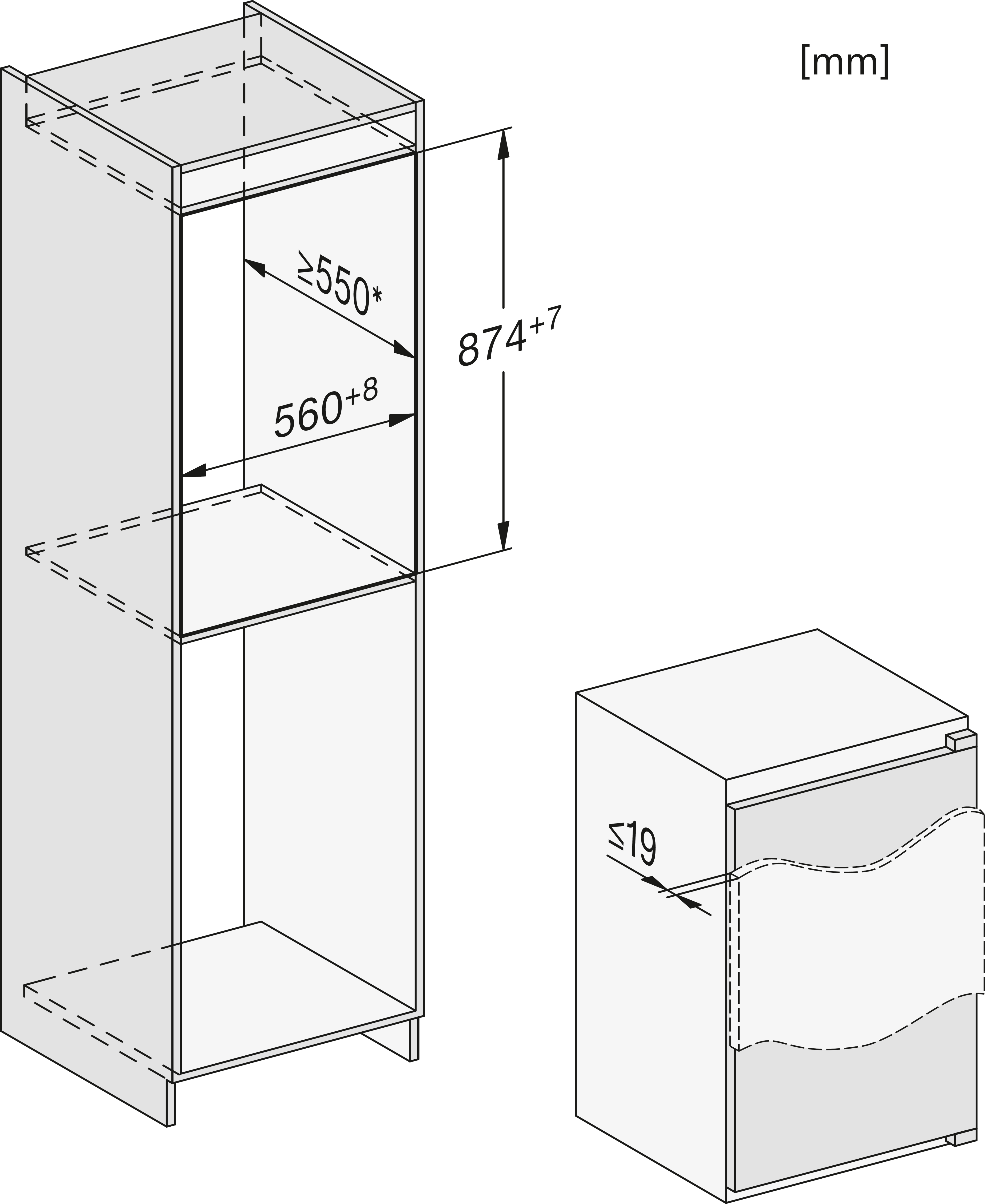 Встраиваемый холодильник со встроенной морозильной камерой 4* и светодиодной подсветкой для большего удобства.