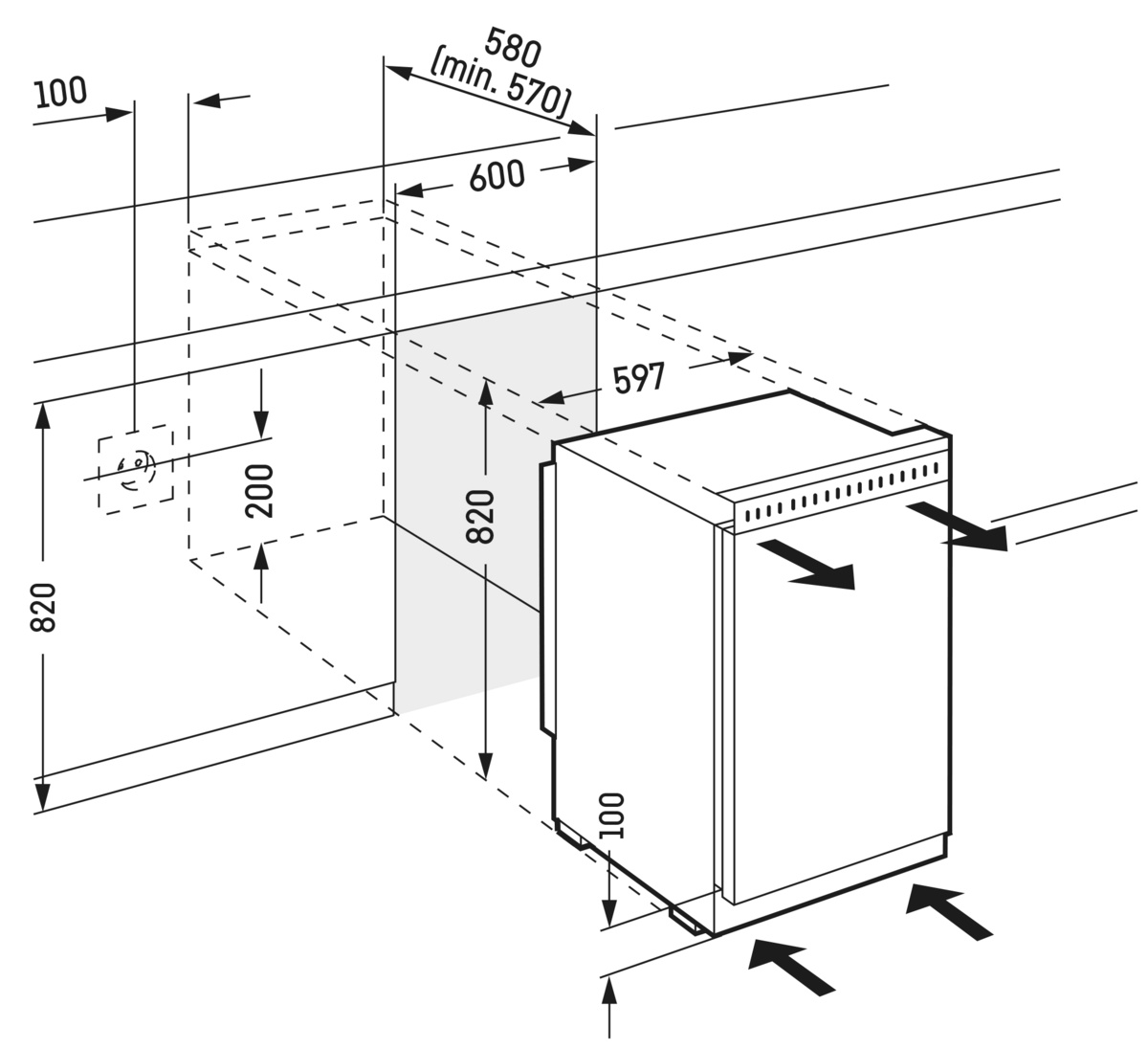 82x60x57см, общий объем 158 л, монтаж под столешницу