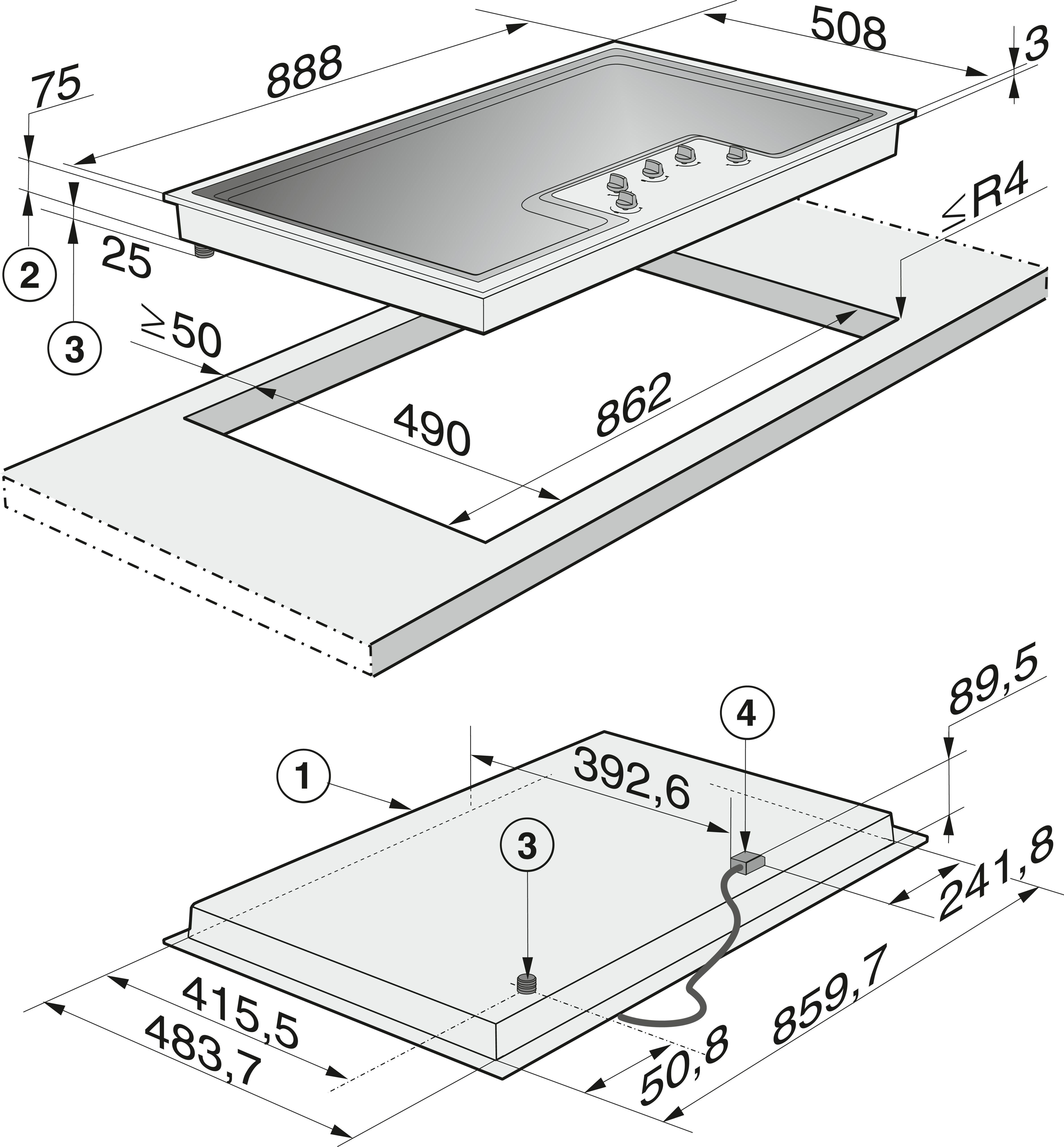 • Габариты (В*Ш*Г), мм: 75*888*508