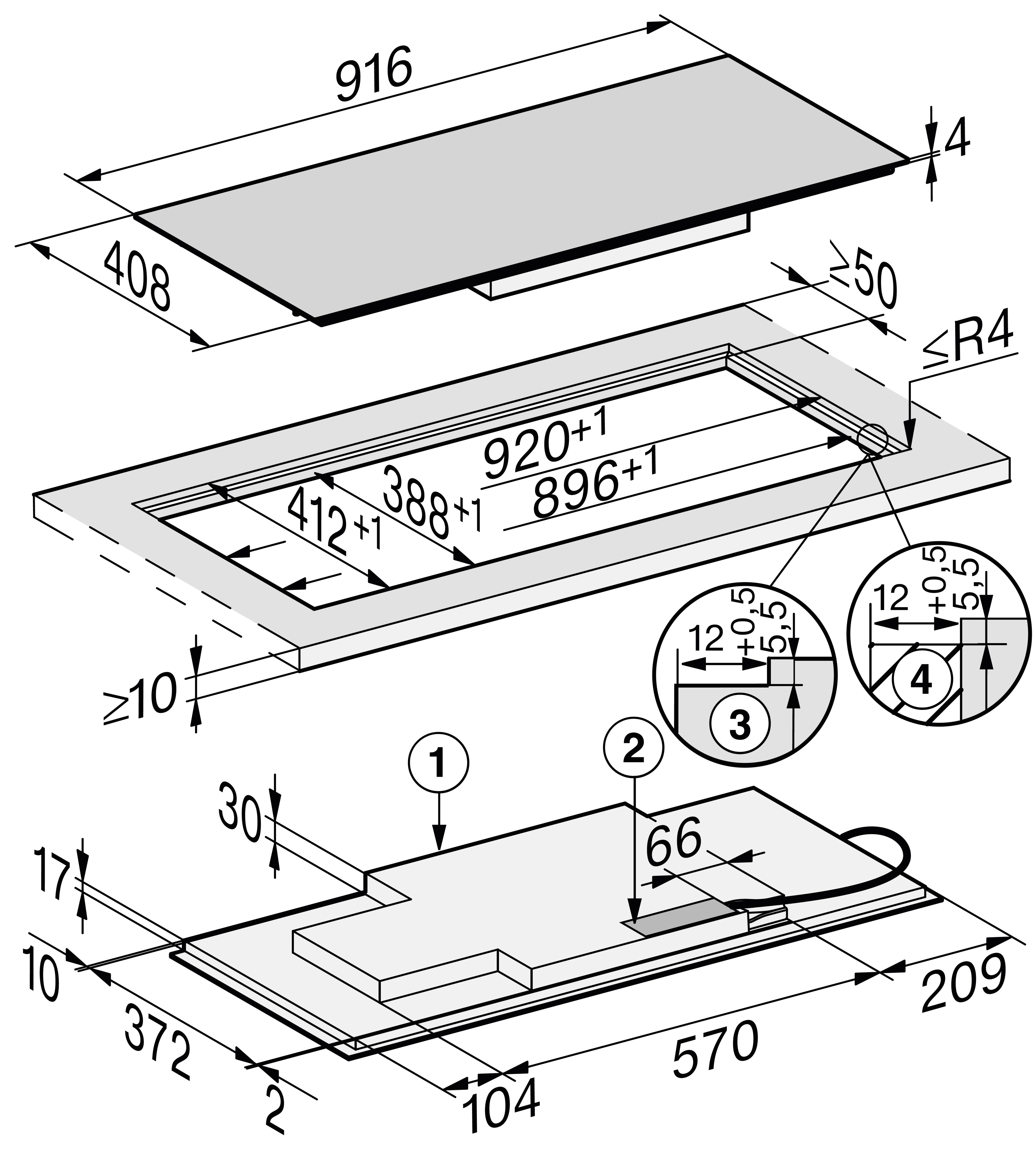 4 индукционные конфорки с автоматикой закипания, в т. ч. 2 с возможностью объединения в 1 зону PowerFlex