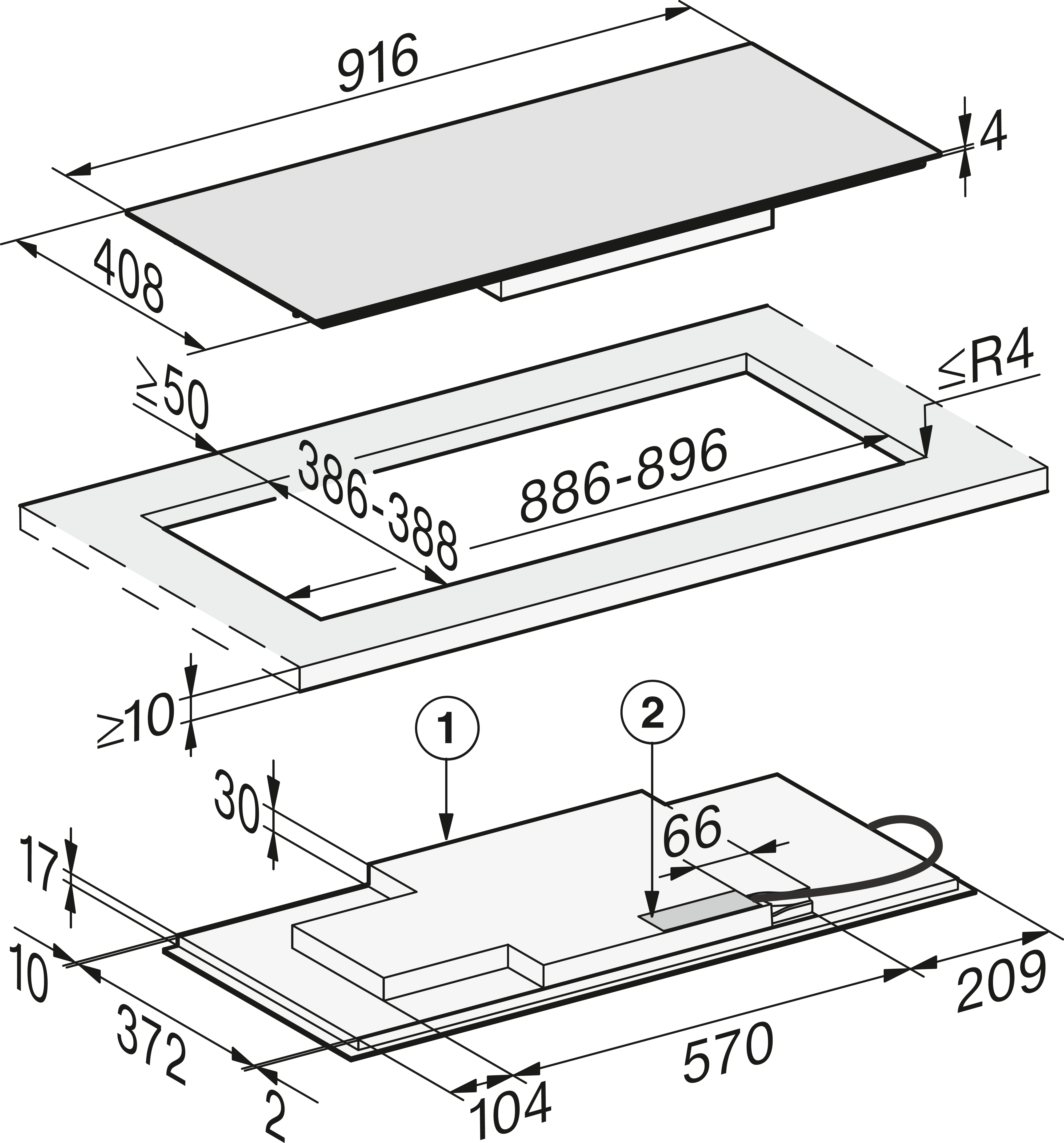 Габариты ниши (Ш х Г): 886 х 386 мм