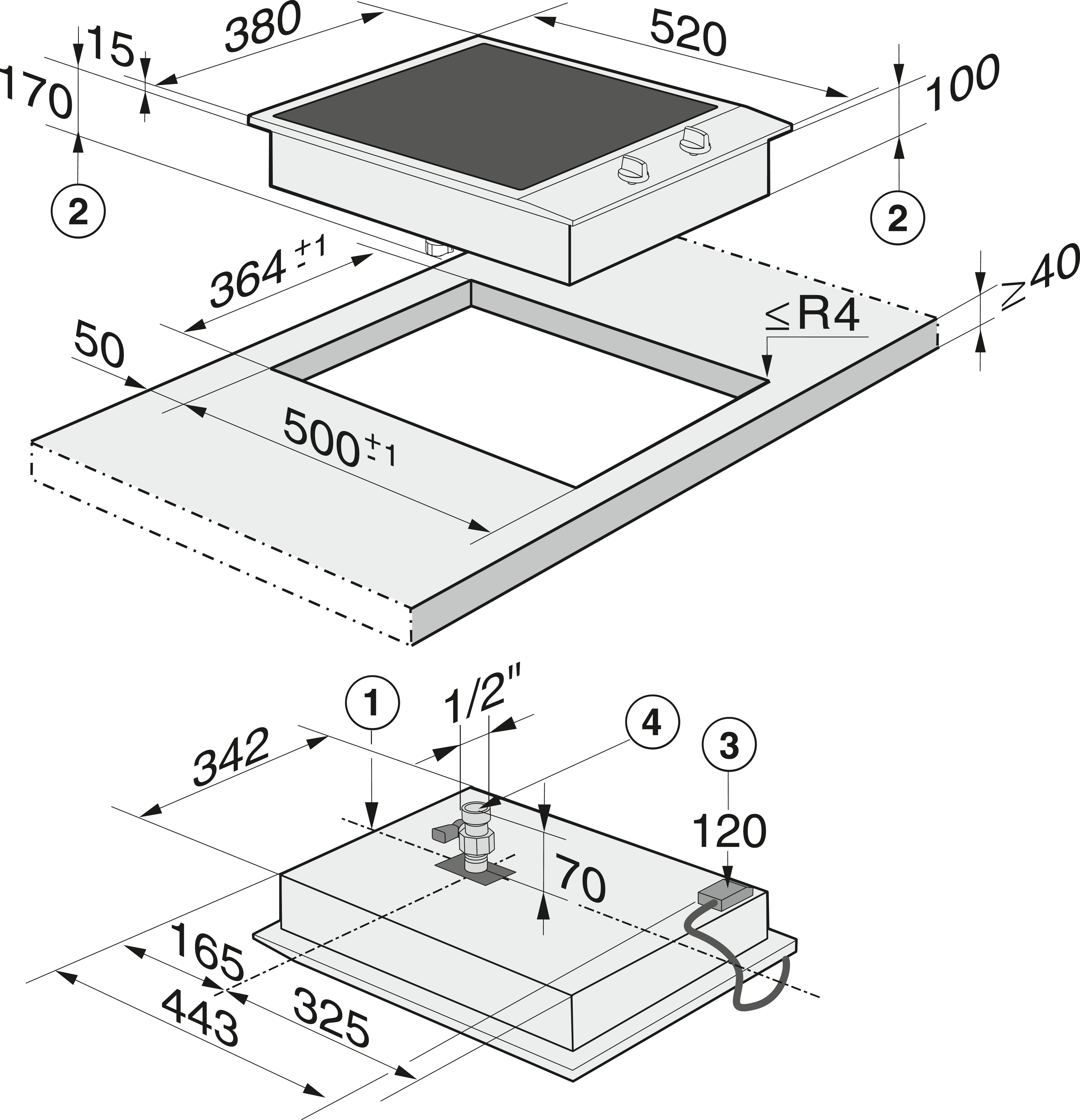 Профессиональный дизайн – поверхность из нержавеющей стали шириной 380 мм.