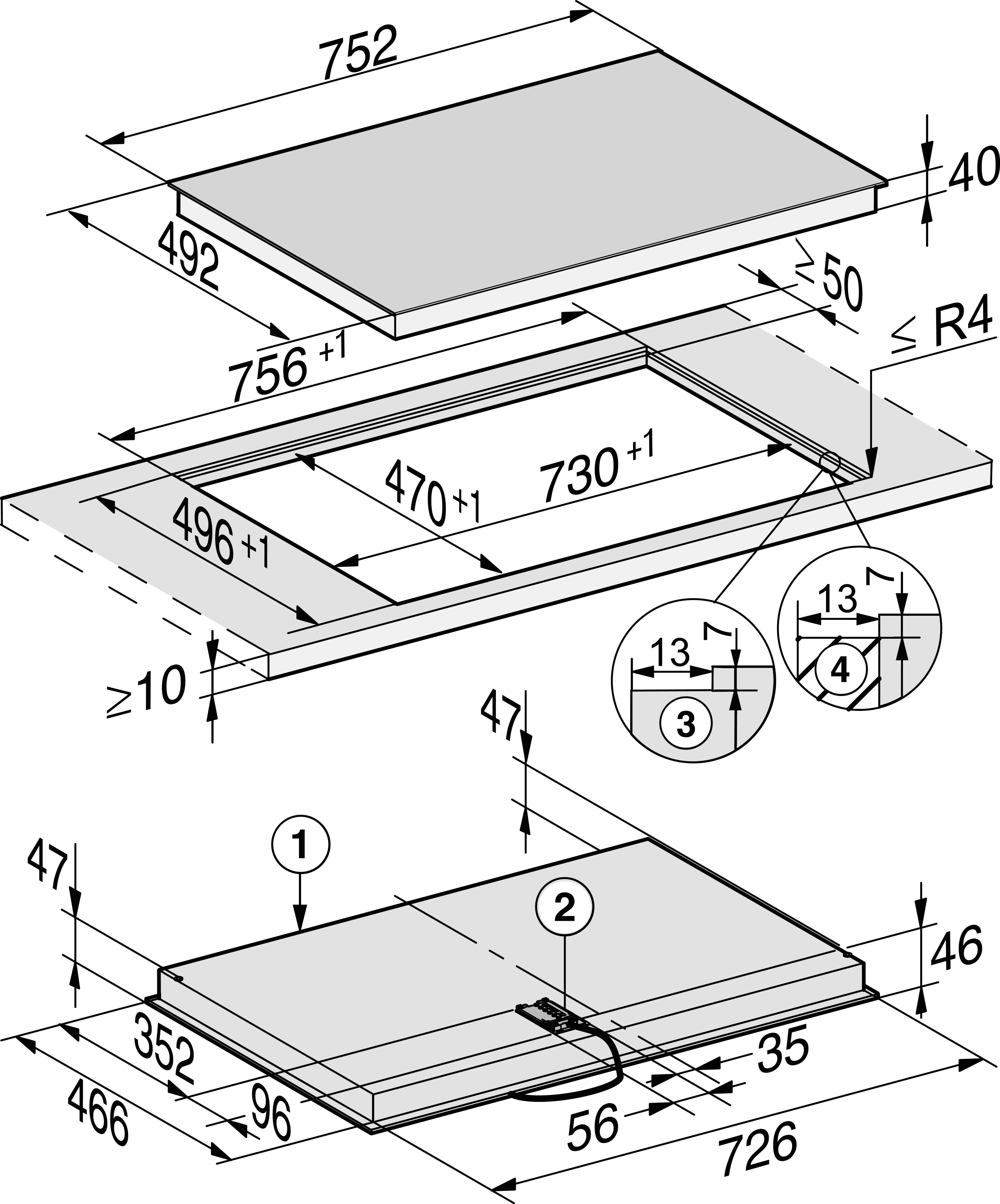 Внешние размеры выреза в мм (ширина) для встраивания заподлицо