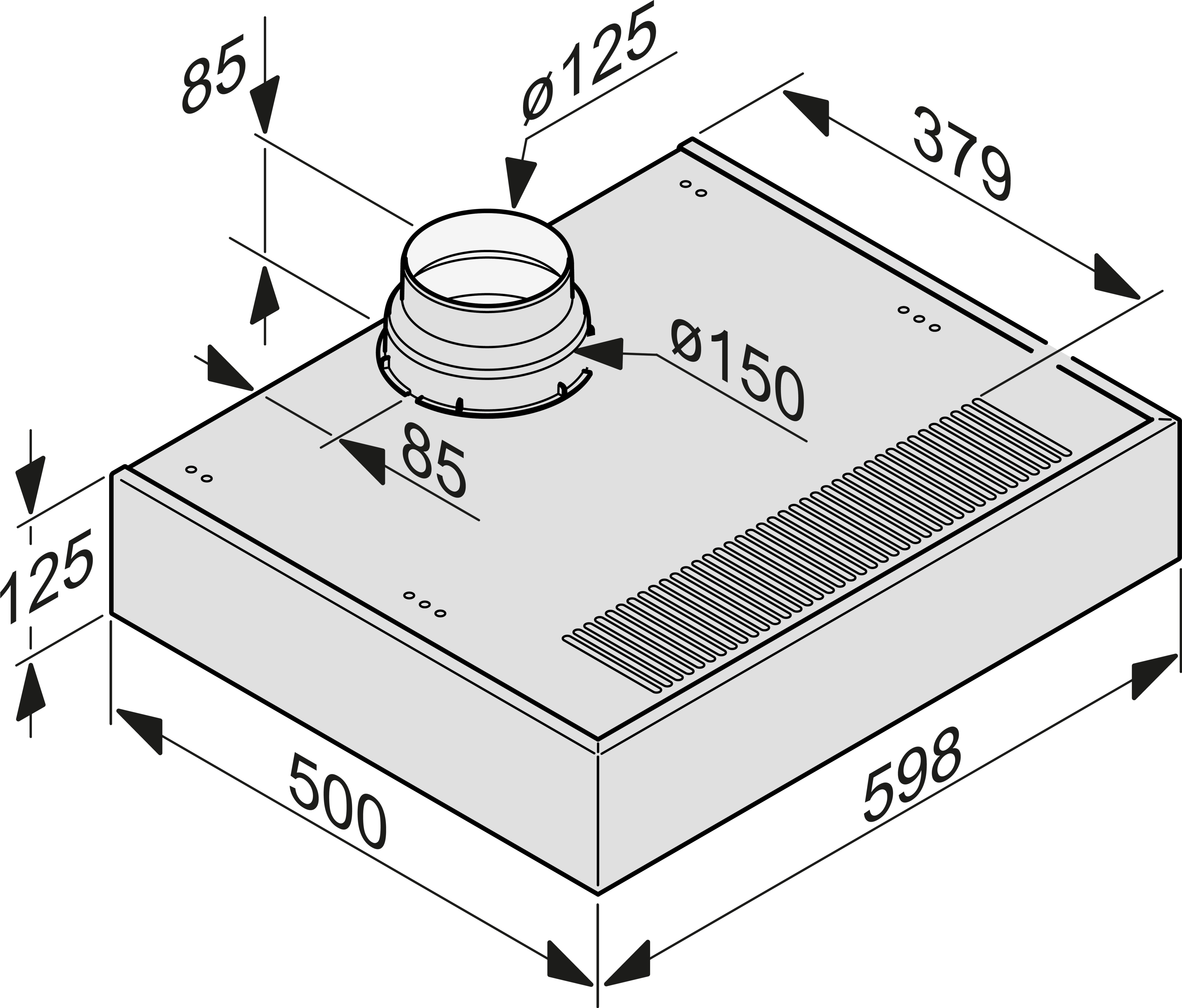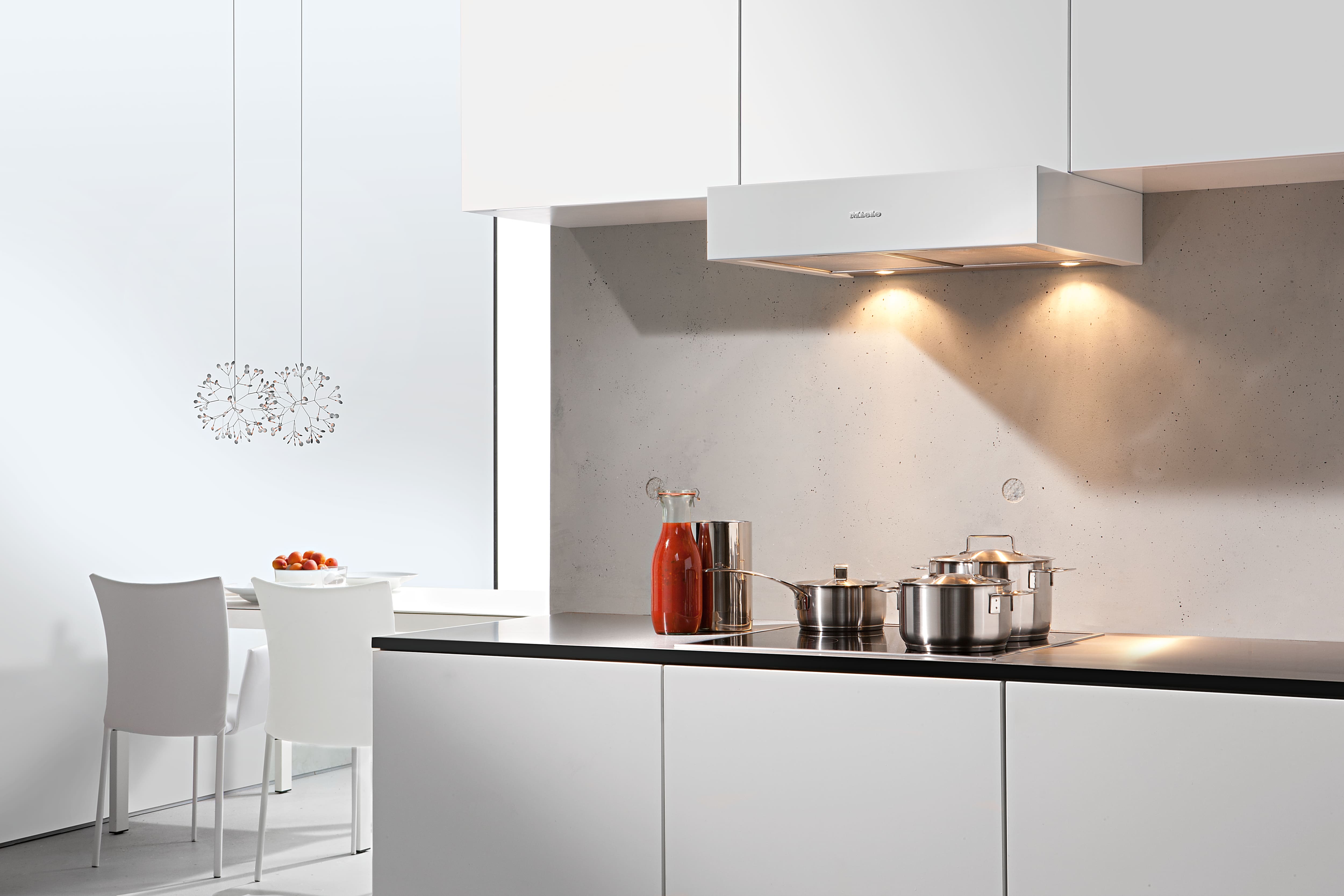 Вытяжка Миле для монтажа под навесной шкаф со светодиодной подсветкой и ползунковым переключателем для удобной работы.