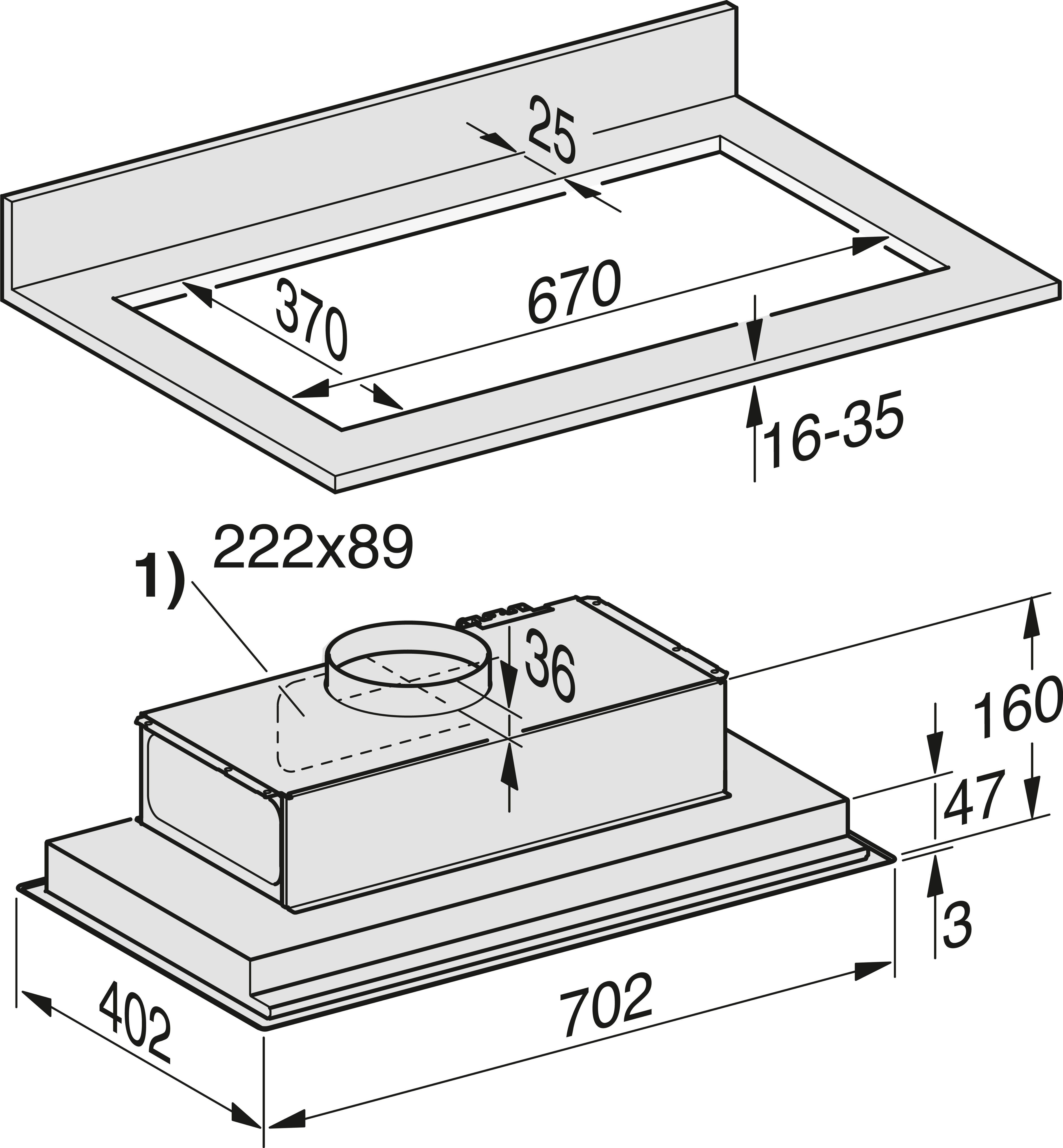 Минимальное безопасное расстояние над панелью газовых конфорок (общая мощность макс. 12,6 кВт, горелки ≤ 4,5 кВт), мм