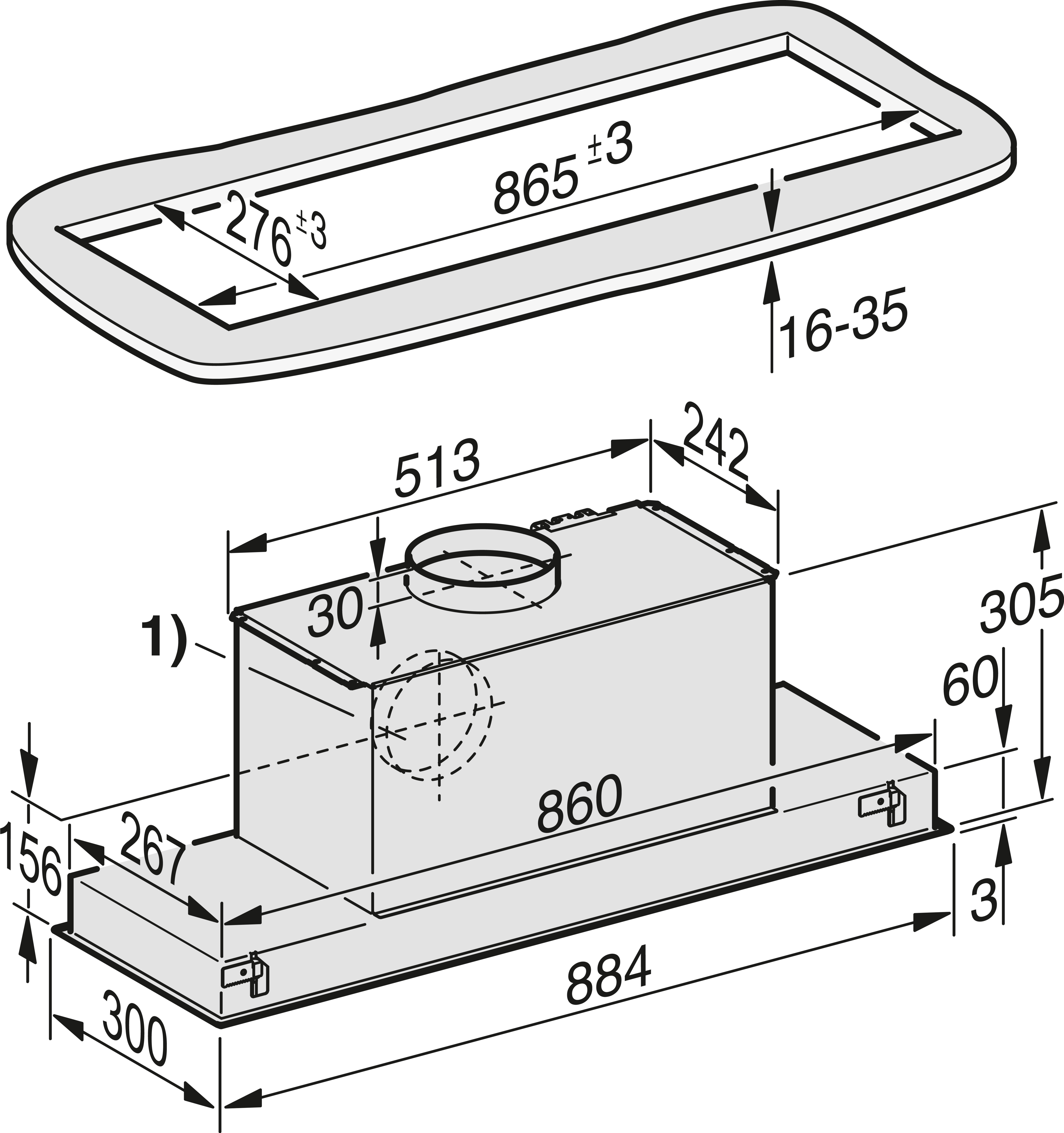 Индивидуальный дизайн – полное встраивание в 880 mm шириной
