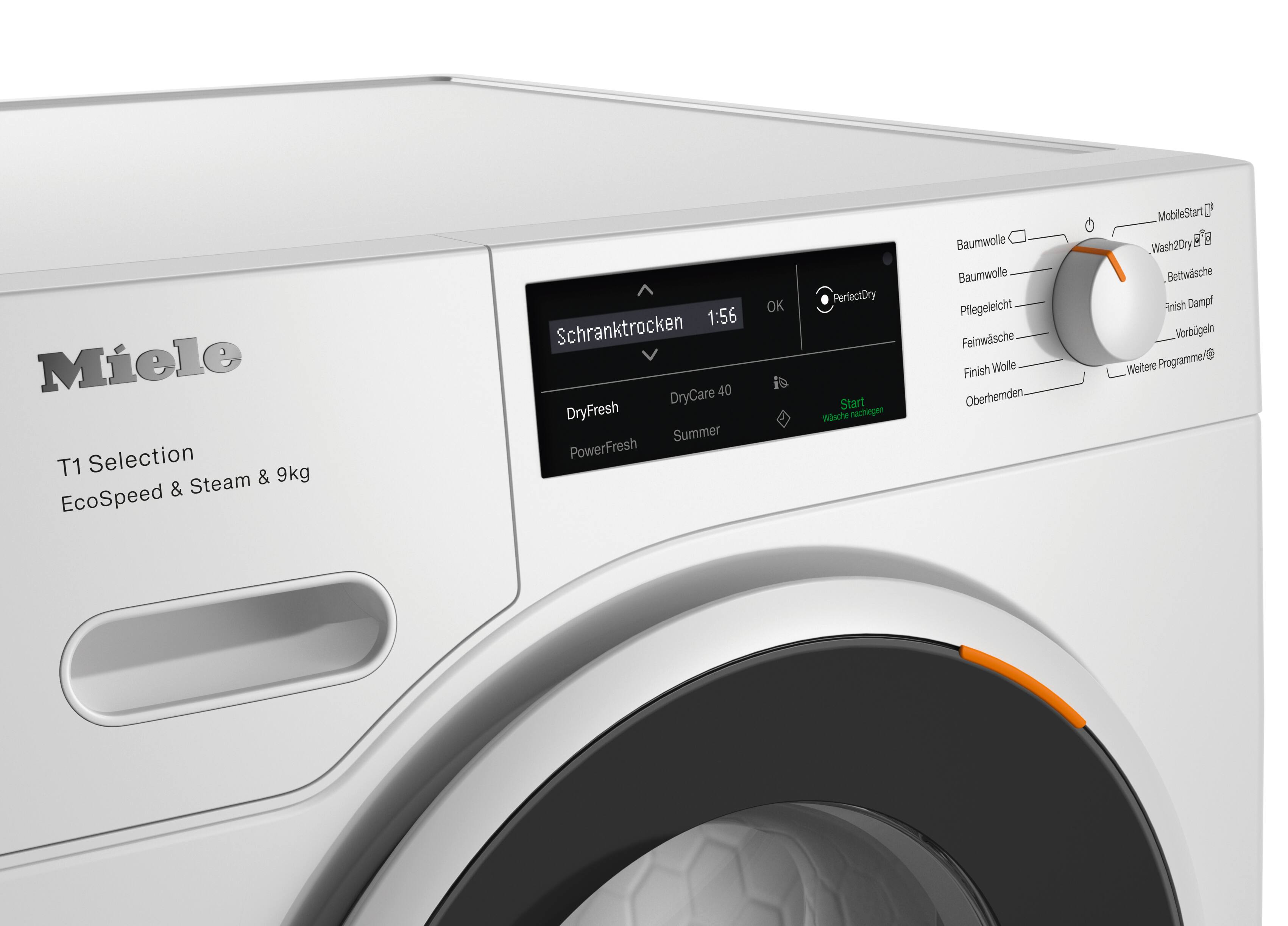 Сушильная машина с тепловым насосом T1: с SteamFinish, DryCare 40 и SilenceDrum для бережной сушки.