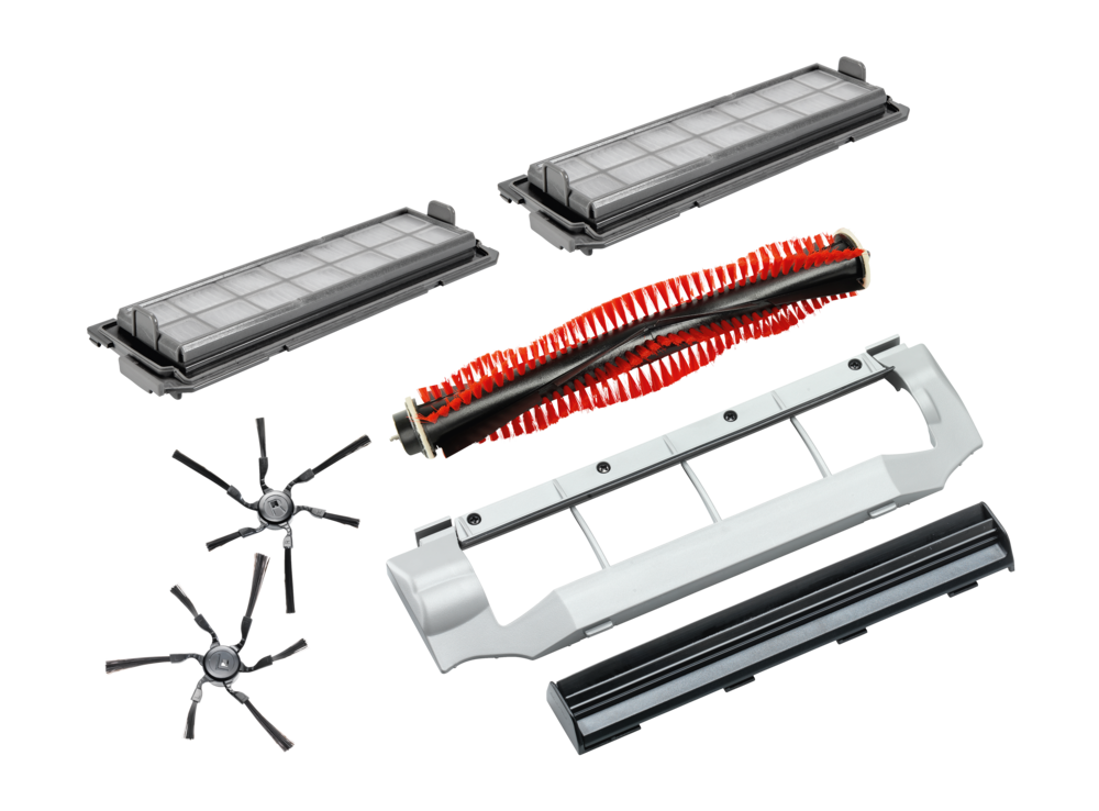 - 1 пара боковых щеток, 1 турбощетка, 1 уплотнительная планка, 2 фильтра AirClean Plus